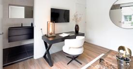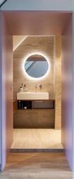 Een aanrechtblad waaruit je de krassen kunt wrijven, een toilet met douche voor lady’s en heren, verwarmde bril en geurafzuiging, tegels met het motief van een vloerkleed.