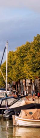 De ligging van Dordrecht is uniek. De stad is een eiland omringd door rivieren: uiterst schilderachtig en herkenbaar door de onvoltooide, stompe toren van de Grote Kerk.