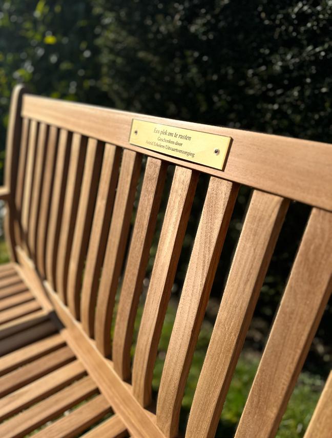 Wish. Deze stichting zet zich in om de wensen van ernstig zieke kinderen waar te maken. Ik vind het bijzonder waardevol om hier een bijdrage aan te kunnen leveren. En om net wat extra’s te doen. Dit geldt ook voor het herinneringsbankje op de Essenhof.”
