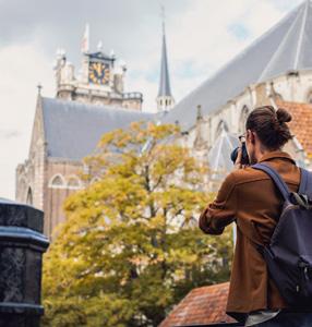 Er staan hier ook zes prachtige fotogenieke plekken van Dordrecht uitgelicht. ‘Zoals het zicht op de Grote Kerk vanaf de Aardappelmarkt en het uitzicht over de Voorstraathaven vanaf de brug bij het Stadhuisplein. Hier komen het herfstlicht, de herfstkleuren en het kenmerkende schilderij van de vijf bekende Dordtse mannen heel mooi samen’, zegt Merel. ‘Vloerstickers op de wandelroute geven deze leuke fotoplekjes aan. Of je nu een selfie maakt met je vrienden of een gezellige gezinsfoto, op deze fotogenieke plekken wordt het sowieso een prachtig plaatje.'