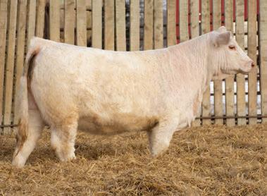 JJ walks the pastures here and in AB at MJT Cattle. We retained an interest in JJ and we are sure glad we did. JJ is a nicely made bull who is smooth made but well muscled and soft sided. He has a tremendous amount of depth of body and natural thickness. He has that herd bull presence, lots of nuts and a ton of hair and a nice big foot under him. As an extra bonus he is about as good-natured as they come- a quality that he passes onto his calves. JJ is backed by some of our favourite dams 942D is an easy keeping, big ribbed female with a good disposition and udder. 176W was one of our nicest made, most consistent, top-producing cows in our herd. At 10 years of age she looked great, maintained her youthfulness and impeccable udder quality and had a great disposition. 176W was known to shorten gestations, which JJ himself often does. We successfully showed JJ at Agribition where he was Intermediate Bull Calf Champion as well as on the international stage as People’s and Judges choice at the International Charolais show. HOMO POLLED