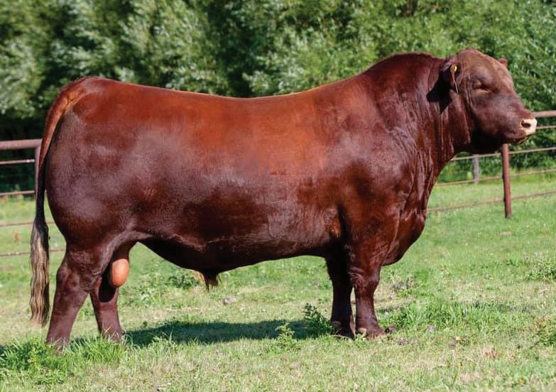 LOT 48: We tried the sire Hedge Fund on a group of heifers and a few top cows in 2020. We have been impressed with the results. Calving ease that is breed leading coupled with impressive growth and body design. Trust Fund 706J comes from a 2 year old dam that is part of our 76 Red Cow Line. He will impress with his simple body mass and capacity. This fellow will add some width of base and volume.