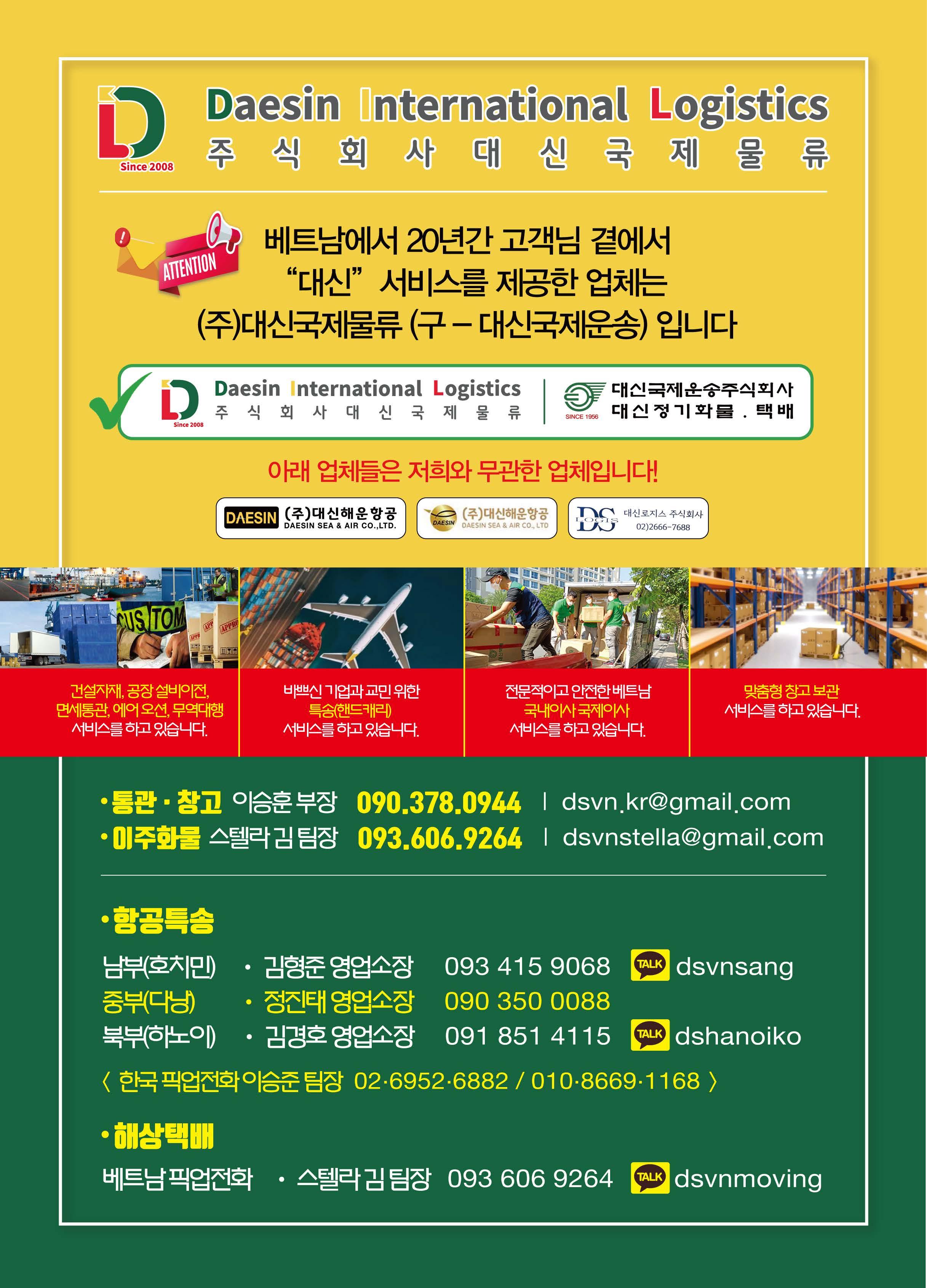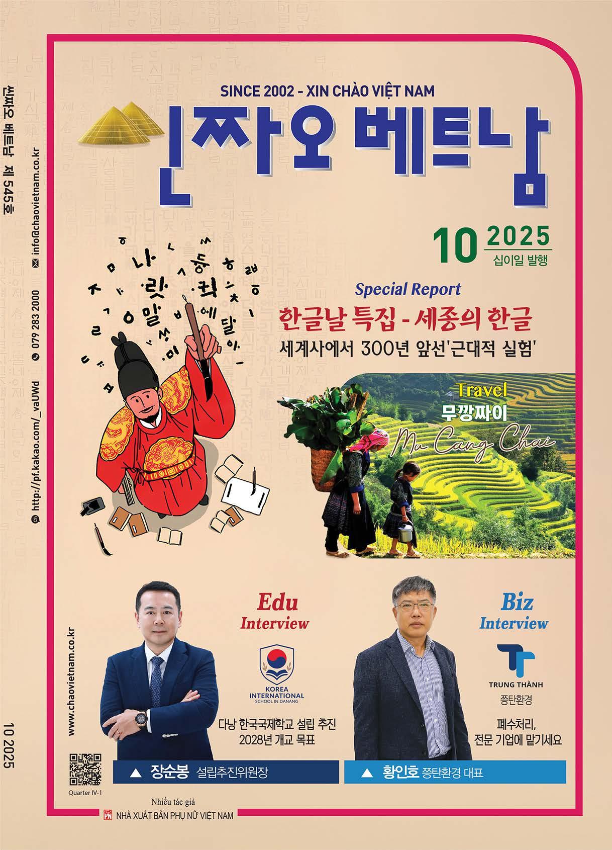 혹시라도 저희가 개발한 앱과 웹사이트에 불편한 점 이 있다면, 저희 INFO@CHAOVIETNAM.CO.KR 로 연락 주셔서 피드백을 남겨주시기를 부탁드립니 다. 고객분들의 쓴소리가 저희 씬짜오베트남이 개선 되는 지름길이라고 생각합니다. 완벽하지는 않지만, 저희의 개발 고통이 담긴 앱을 이용하시면서 다른 교 민분들과 교류도 하시고, 이용하시면서 불편한 점을 허심탄회하게 말씀해 주시길 부탁드립니다. 한편, 12일 발행되는 545호 잡지에는 한글날을 기념 한 특별 기사와 더불어, 왜 선진국들이 제조업을 부활