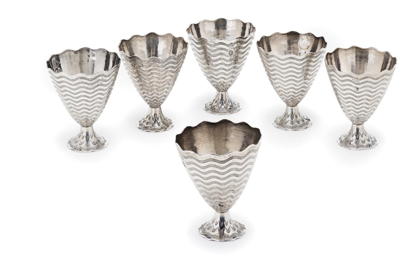 A SET OF THREE VICTORIAN SILVER BOTTLE COLLARS, GEORGE JOHN RICHARDS, LONDON, 1851 reeded rims, pierced for MADEIRA, PORT and SHERRY, 8.4cm diameter; together with two pairs of silver-mounted cork bottle stoppers, one pair stamped with leafy grapes below branch-like ring handles, William Gough, Birmingham, 1848, the other pair with plain disc surmount, Ephraim Tysall, London, 1884 (7)
