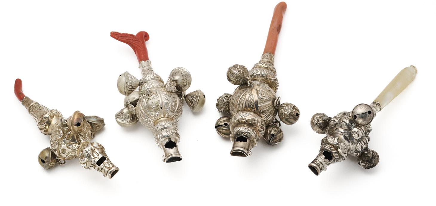 Pomanders were often suspended from the wearer's neck or girdle, used to hold scents and spices, also sometimes functioning as an amulet, warding against plague and other ‘miasma’ borne diseases. Although occasionally modelled as a skull or die, the normal pomander form is round, with compartments like orange segments. Snail pomanders are rarer, the form symbolic: ‘The ability of the snail to withdraw into its protective shell at times of danger or hardship resulted in its becoming the symbol of spring and resurrection. We know of the apotropaic use of snail amulets when plague was rife.’ (Launert, Edmund ‘Perfume and Pomanders: Scent and Scent Bottles through the Ages’, Potterton Books Ltd., 1987, p.22). See three similar silver snail pomanders held by the Victoria and Albert Museum, catalogued as 'scent cases' (Accession Nos.M.805-1926, M.806-1926 and M.128-1929) and one sold Sotheby's, London, 7 June 2007, lot 107.