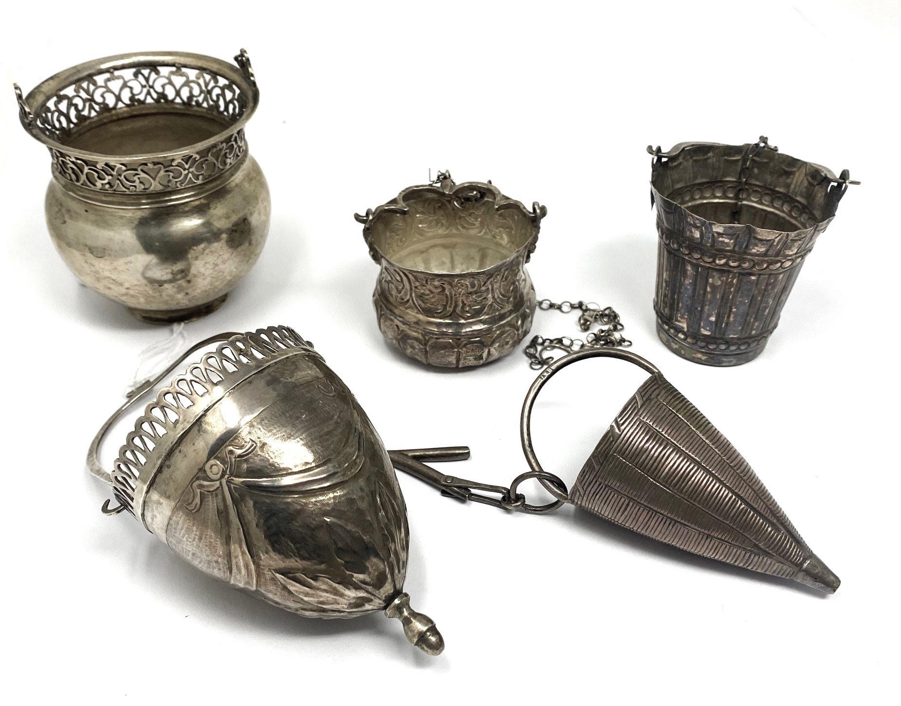 the animal's head poking out from the bottom of its shell, the sides hinged from the base, one side pierced to retain an aromatic sponge and engraved to interior '.M.K.', the other solid side with concentric ribs concealing an interior originally with four dividers (lacking) for spices, two engraved 'P[o]urri' and 'Negel', with suspension ring, 3cm long