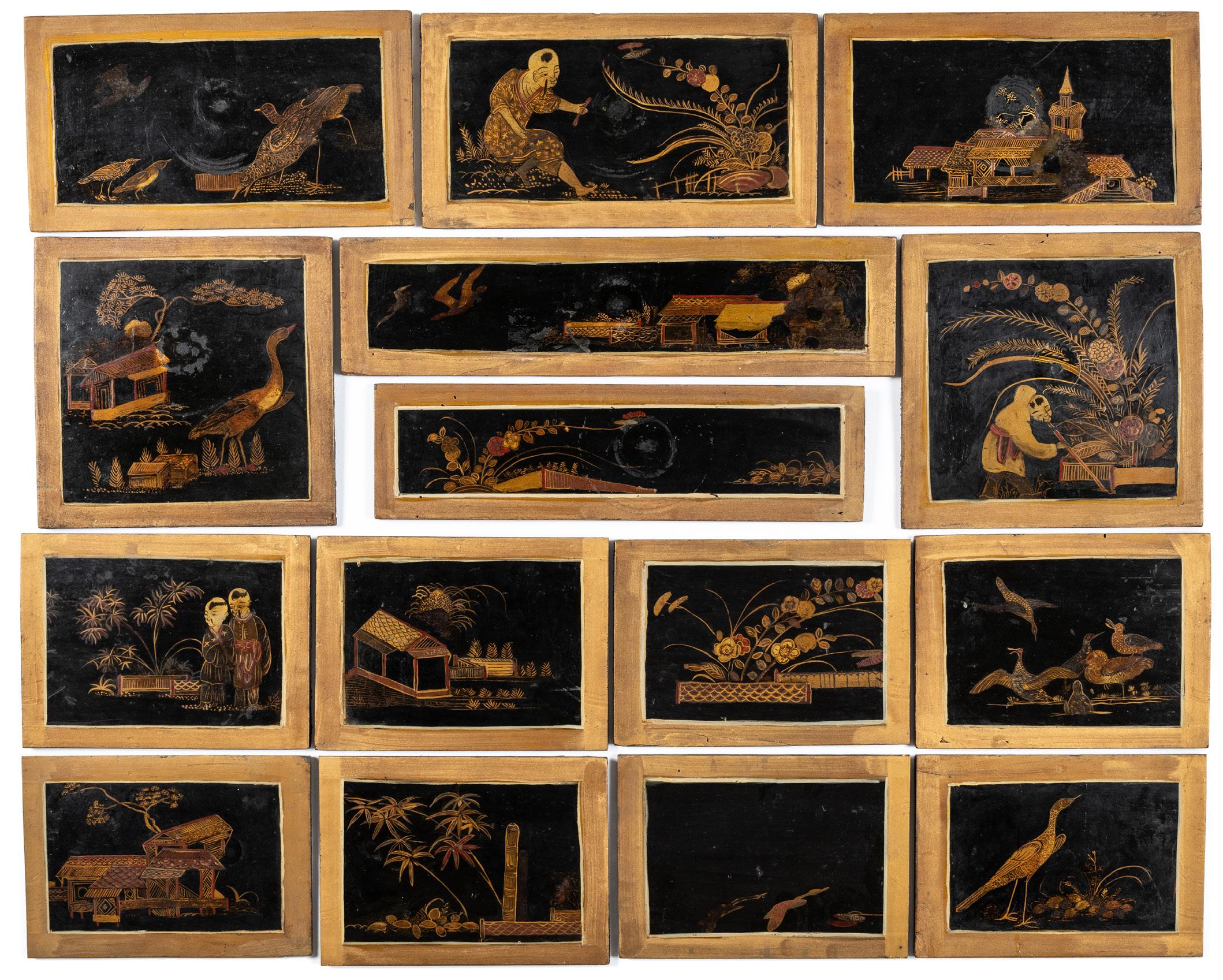 A SET OF SIXTEEN ROSENTHAL PORCELAIN SMALL BOWLS AND SAUCERS, DESIGNED BY GIANNI VERSACE (19461997), 1990s, ‘Le Voyage de Marco Polo’ series, the straight sided faceted bowls decorated with two pairs of peacocks against a green trellised ground, the bowl interiors and the saucers centred by a roundel of green peacock feathers, with formal borders and gilt detailing throughout, comprising eight double handled bowls and eight of the same size but with a single handle, all with black and gilt Rosenthal/Versace mark, all in their original cardboard boxes with Rosenthal/Versace slip covers, bowls 9cm diameter, saucers 15cm diameter (32)