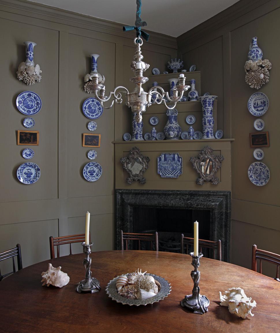 This collection was begun over twenty-five years ago, adorning an 18th century house in Covent Garden. The dining room (illustration featuring lots 4-7, 58, 61, 109, 125 & 126) was enlivened by Chinese, Japanese and Delft blue & white, arrayed on open shelves and coral brackets over black lacquer and dark grey panelling, designed to reflect and absorb candlelight. Olympia Auctions sold many of the Asian pieces from the collection on 26 April 2023 (see lot 8 in that sale for further details), as well as a group of forty Islamic tiles from the same house on 18th November 2020.