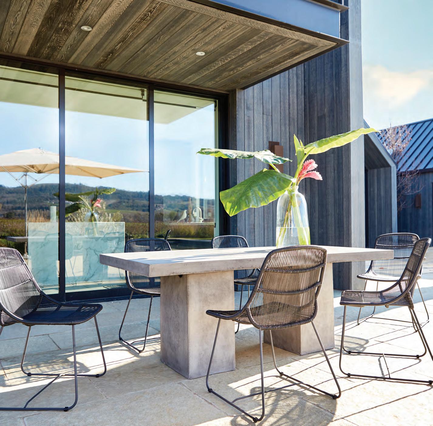 and scope, Julie reached out to an architect, Daniel Weaver of the Mill Valley-based fi rm 361 Architecture. The design he came up with called for a 327-square-foot bump-out to create a great room with two floor-to-ceiling glass walls, which look out at nothing but trees and wildlife. The east wall opens up, allowing for a seamless flow between indoor and outdoor spaces. Part of what was previously a small family room became a home office.