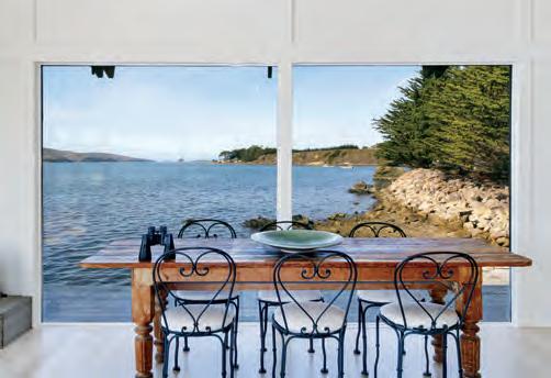 Like the house itself, Smith’s aesthetic is a mix of old and new. In the dining room, she’s placed a modern painting alongside antique dining room chairs and an Asian tansu chest, fi nds from her years of San Anselmo antiquehunting. The home reflects her own history too: a living-room shelf displays books once owned by her immigrant grandparents. She’s placed new and vintage family portraits (and