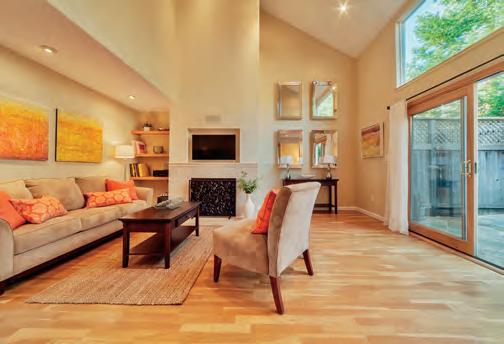 A longtime resident of Larkspur, Smith wanted to downsize after a divorce and sending two kids off o college. So she asked her realtor, Susan Hewitt, to fi nd a pre-1940s home that was move-in ready. They did an extensive search, bidding unsuccessfully on two other houses before Smith bought this 1938 home, which, with its vintage European rooftop tiles, painted fir floors and small rooms, emanates old-fashioned appeal.