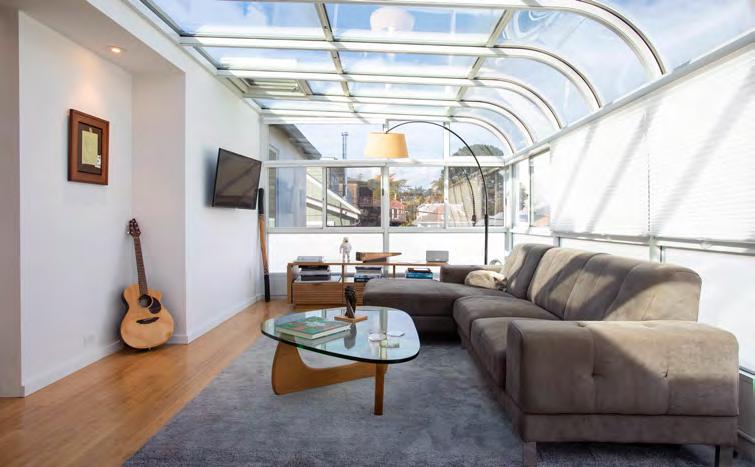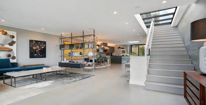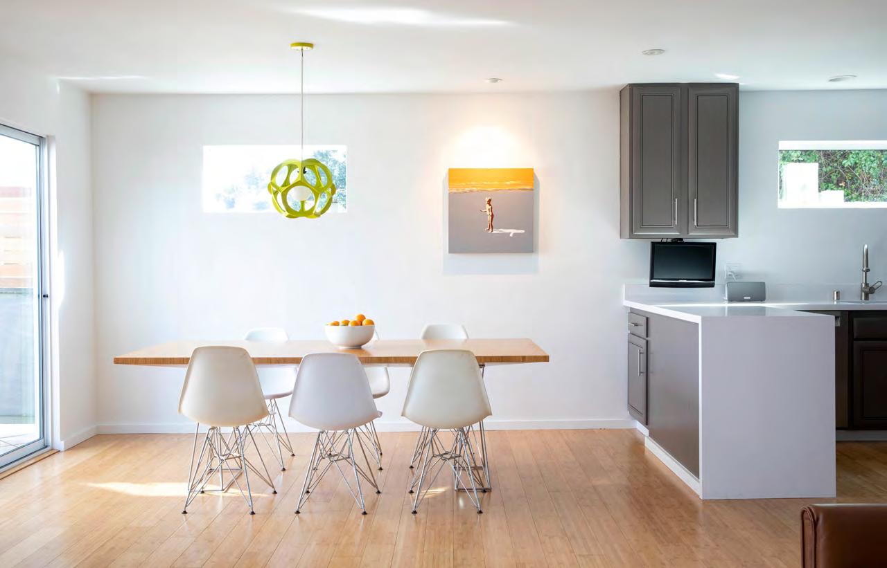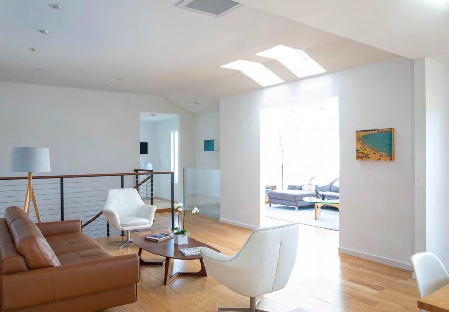 For an artist, flat walls and proper art light ing are essential, and Zener made these integral to the design. “We replaced all the Sheetrock with level-five drywall so it’s super smooth.” Every window in the home was swapped out; some were even removed to create dramatic art walls, and a few small windows were added to capture peekaboo views of the bay.