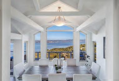 We’re water people — that’s what brought us to Belvedere,” says designer Eugenia Jesberg. “We always wanted to live here on the lagoon.” When Jesberg and her husband, who is an avid sailor, started looking in Belvedere, they lived in Mill Valley, where the designer has had her fi rm, EJ Interior Design, sinceHer1993.professional expertise meant that when the couple found a house that had been built in the 1960s and left untouched, they weren’t daunted. “This house had no curb appeal — zero, zip, nada,” she says with a laugh. “It had good enough bones and a great location, but it was very dark, with lots of brown paneling.”