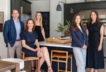 credit to my wife for the beams idea,” Parlette says. Likewise, the home’s new primary suite feels warm and inviting with a custom floating oak vanity and Caesarstone countertop set against a backdrop of handmade, textured, denim-hued ceramic tile from TileBar. Outside, the landscape was re-graded to accommodate the new pool and landscaped with grasses and trees including four ginko trees that are illuminated at night. “Now when you look out from the kitchen and see the trees it feels like there’s a whole other room out there,” Parlette says. “It makes the house feel so much bigger.”