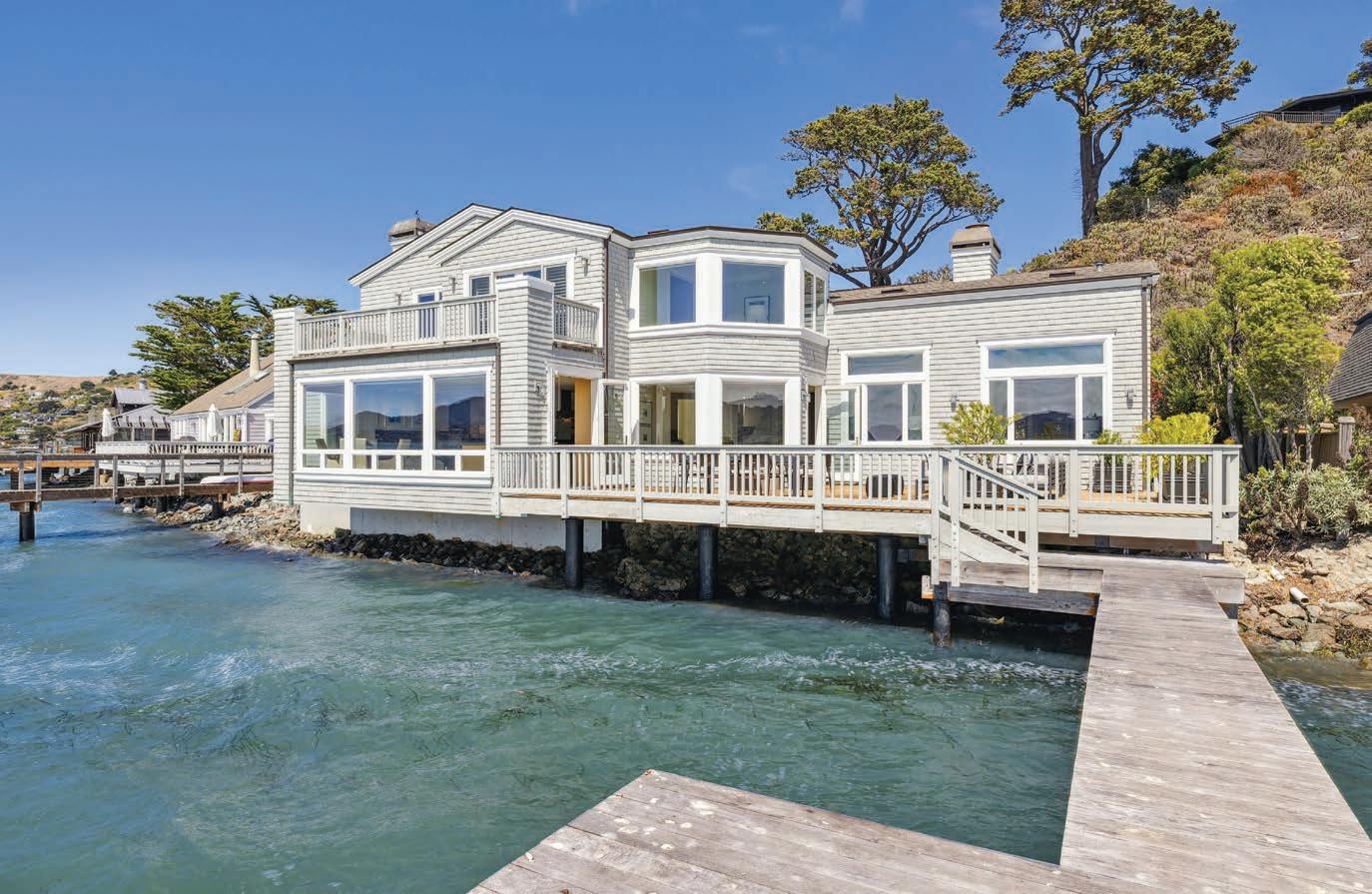 THIS STUNNING FLOATING HOME was custom built in 2000 by renowned Sausalito builder Aquamaison. Nestled in one of a select few premium private end berths, the home offers sweeping, unobstructed views of Richardson Bay, Strawberry Point, Tiburon, Belvedere, and beyond. This two-level residence features a covered upper main entrance that opens into a dramatic great room with soaring ceilings, a well-appointed kitchen, front hall closet, dedicated office with custom cabinetry, and a full bathroom with shower and tub. Downstairs, you’ll find three bedrooms and two full bathrooms, including a primary suite with a jetted tub, separate shower, and a stone-surround evening-glow fireplace, including a hall storage closet and a separate laundry room.