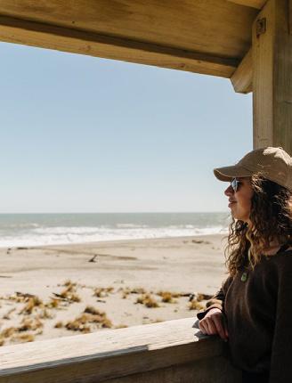 If you find yourself venturing up SH6 north of Haast, stop to explore Ship Creek, the starting point for two short, photogenic trails. The Kahikatea Swamp Forest Walk (20 mins) winds along boardwalks through lush, boggy forest. In contrast, the Dune Lake Trail leads through windswept sandy dunes to sweeping sea and forest views. This coastline is part of the Tauparikākā Marine Reserve, one of the best places to spot Hector’s dolphins – the world’s smallest dolphins – playing in the surf.