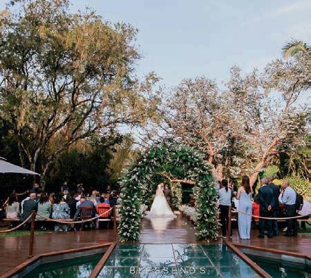 se estende um charmoso salão receptivo com lareira e lustres filipinos, espaço cerimonial com capacidade para 300 pessoas, lago ornamental e uma boate disco, com vista panorâmica para os jardins dos arredores –, o Alto das Pal meiras é referência no ramo matrimo nial do interior paulista.