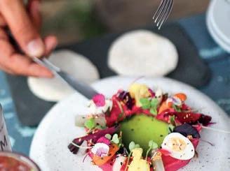 No restaurante Ymbu, o cardápio privilegia ingredientes da região. Exemplos disso são o risoto negro de cogumelos, servido com nacos de polvo e tapenade de pimentão vermelho, o filé de peixe com bisque de moqueca e arroz negro e legumes da horta ou ainda a korma de vegetais (aromático cozido de