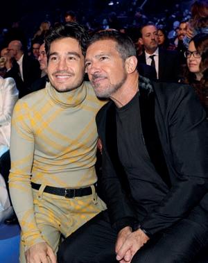 Ao lado, Tiago com a cantora Anitta. Abaixo, tietando Antonio Banderas e posando ao lado de sua companheira Duda Rodrigues, na festa do Grammy Latino