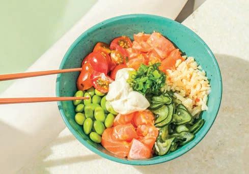 manga, tomatinhos cereja, sunomono de pepino, edamame e crispy de alho poró. Para quem prefere um confortante rámen, a sugestão é o que é feito com tiras de filé mignon, caldo de carne, massa fresca, cogumelos shitake, ovo perfeito, cebolinha e pimenta sriracha.