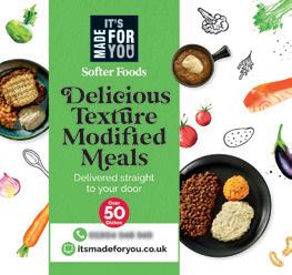 Delicious, nutritious and safe texture modified meals delivered ✓ A range of over 50 dishes in IDDSI Level 4, 5 and 6 designed for the IDDSI required texture. ✓ Choose from breakfast, mains, minis and desserts. ✓ Helping you to support and keep your patients safe at mealtimes. ✓ No contracts, order as much or as little as you like. PROUD SUPPORTER OF GOLD SPONSOR We are proud Gold sponsors of the International Dysphagia Diet Standardisation Initiative To order brochures for your patients or for a free demo call 0333 433 0178 or visit itsmadeforyou.co.uk Soft & Bite-Sized Meals Minced & Moist Meals Puréed Meals LEVEL 4 LEVEL 5 LEVEL 6