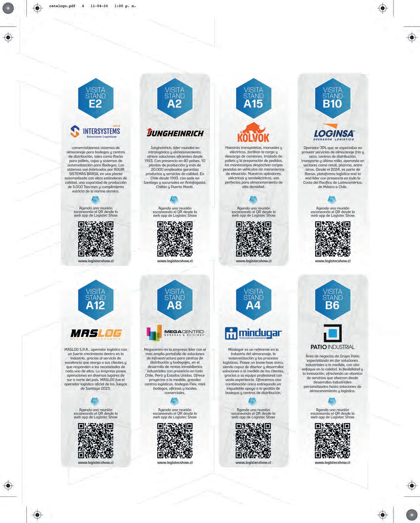 jungheinrich.cl ❱ C3 avanzapark.cl ❱ 1 intersystems.cl ❱ 15 dercomaq.cl ❱ 27 emotrans.com ❱ 25 redtecsa.com ❱ 35 borealtech.com ❱ 39 gpschile.com ❱ 45 hillebrandgori.com ❱ 63 stglatam.com ❱ C1 danich.cl ❱ C2 westorage.cl ❱ 7 bsf.cl ❱ 17 ar-racking.com ❱ 65 bodenorflexcenter.cl ❱ 9 esnova.com ❱ 11 mindugar.com ❱ 21 strix.cl ❱ 29 caltronics.cl ❱ 43 id-logistics.com/cl ❱ 53 arrimaq.com ❱ 51 danco.cl ❱ 69 rocktruck.cl ❱ 73 evolog.cl ❱ 83 transgamboa.cl ❱ 95 sligroup.cl ❱ 87 apllogistics.com ❱ 96 symple.cl ❱ 89 tasalogistica.cl ❱ 93 tds.cl ❱ 79 77 silo-logistica.cl ❱ 81 calycochile.cl ❱ 23 unigis.com ❱ 31 patio.cl ❱ 33 finning.com ❱ 71