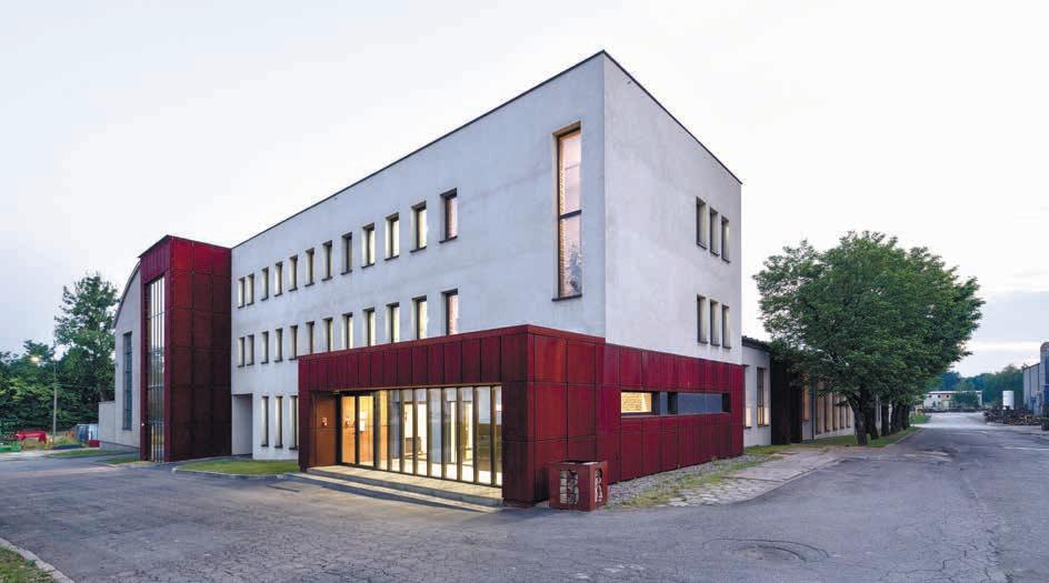 The main idea was to maintain material honesty, find simple design solutions and keep as much of the original build ings structures as possible. Brick walls were revealed, existing staircases fin ished with terrazzo got renovated, while the designed corten steel panels used on the facade were made out of unused stock of the company’s steel and was entirely manufactured by the client. Its corten steel facade was made based on an executive project prepared by ar chitects to make essential use of oldstored materials. Therefore, the idea of zero waste was implemented into the design.