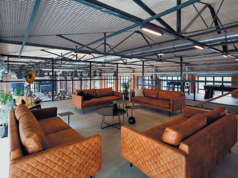 Interiors are designed in loft style, with exposed brick, concrete and terrazzo coupled with new elements with black finish. Wall sepa rating the canteen from the office building and all ceilings were covered with acoustic panels made out of natural materials. Duc twork and engineering details were exposed. Furniture is kept mini malistic to complement the style. Refurbishment will be continued in next stages.
