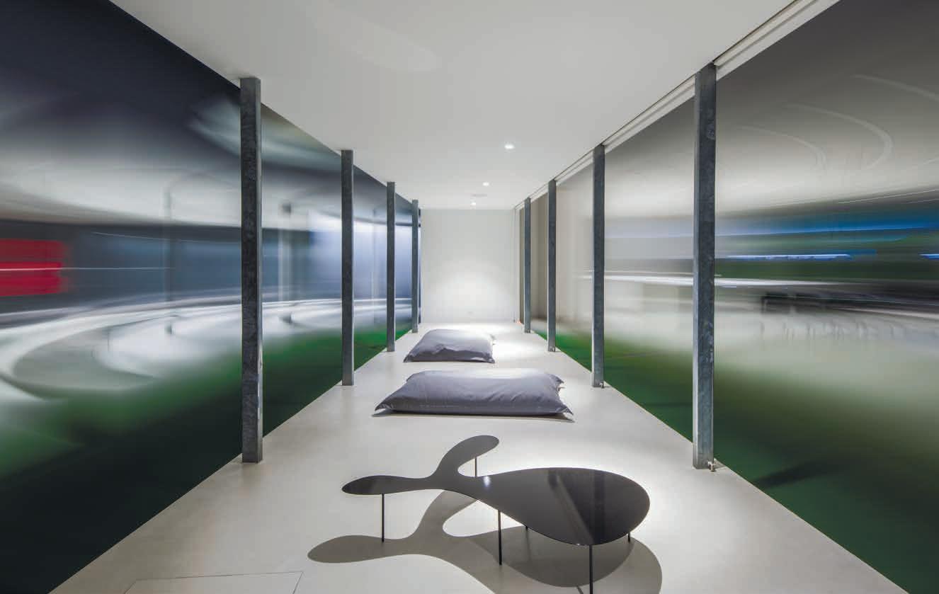 The drive system is fully automated, but manual control is also possible, de pending on the needs. Movement of the terrace has been programmed to be in constant motion during the day, so that natural grass grows underneath.
