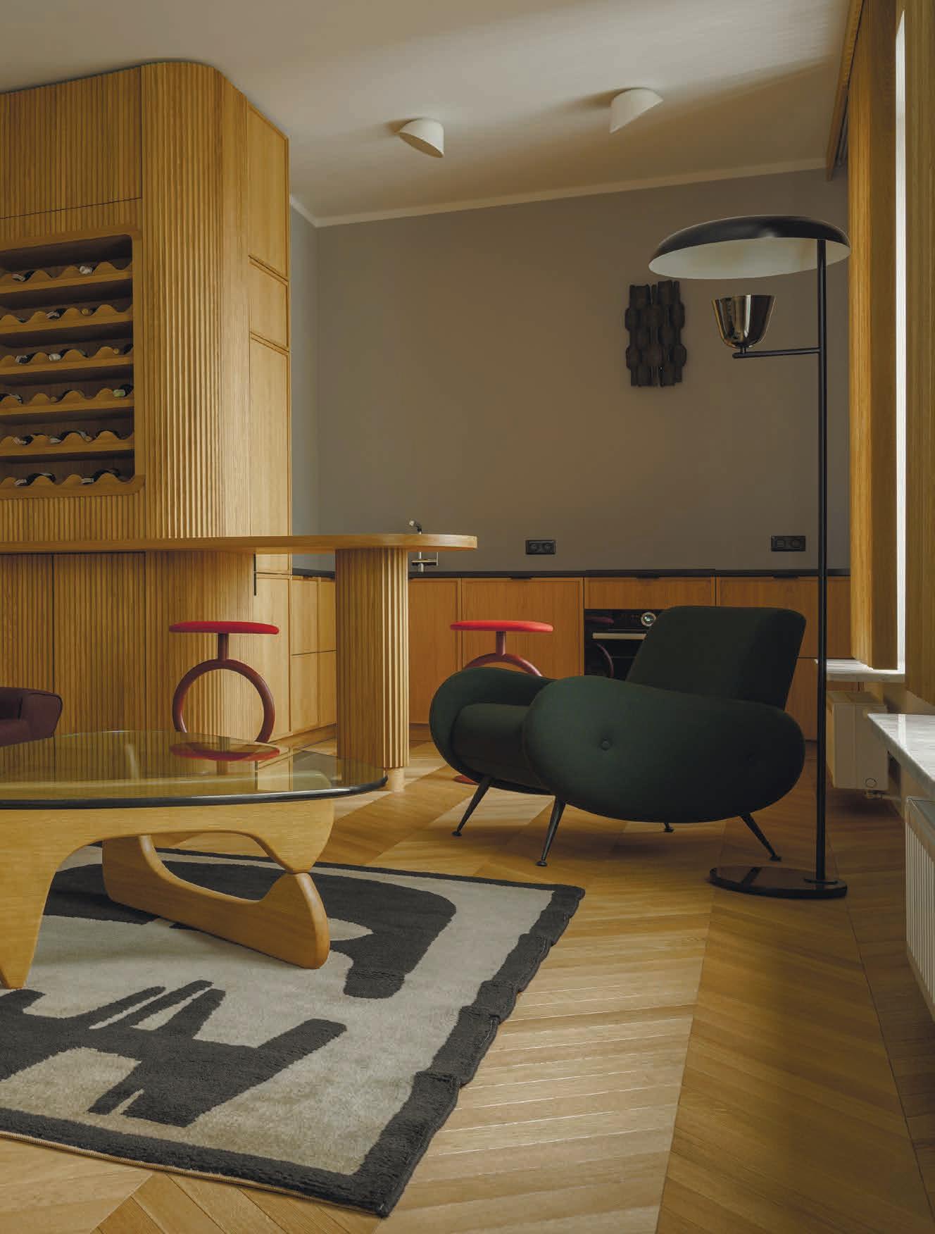 THE COLOR SCHEME OF THE INTERIOR COMBINES THE COLORS OF NATURAL MATERIALS.