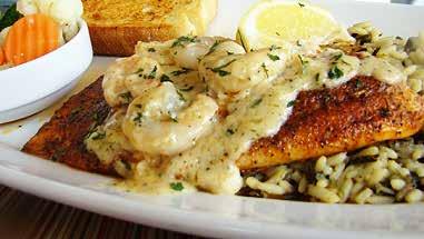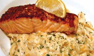 Cajun seasoned tilapia fillet baked and topped with plump shrimp in a creamy butter parmesan sauce, served on a bed of wild rice pilaf. Includes choice of one side. 17.99 Center-cut salmon loin 20.99