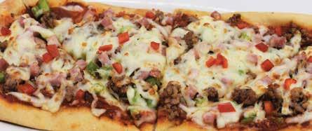 Sausage, pepperoni, black olives, mushrooms, green peppers & onions on marinara with mozzarella. 11.49