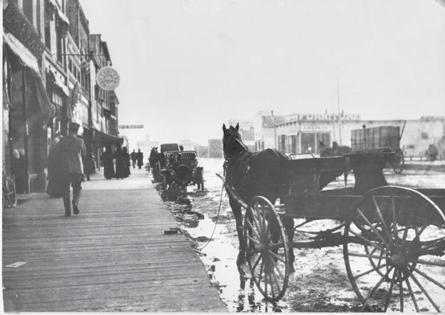 uphill to both keep gasoline in the engine and to utilize the stronger reverse gear. Most roads were not well-kept and were dirt trails until well after 1900. Among our pioneer stories, one writer tells of her father’s recollections of seeing a car for the first time. He had seen the car stalled on the side of the road with the surrounding crowd teasing the driver that he should just get a horse. Given the early conditions and difficulties, one might have believed that.