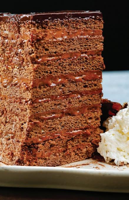 A perennial Best of KC winner, Silo Modern Farmhouse continues to deliver new and decadent menu items. This towering madefrom-scratch dessert is one the most popular dishes on the menu. Layer upon layer of chocolate cake with chocolate ganache and drizzled with an amerena cherry chocolate sauce. It’s topped with vanilla whipped cream and a delightfully crunchy chocolate and burnt sugar lace. Trust us, you’re going to want to make room for dessert. Open Tuesday through Friday 11 – 8 and open until 9:00 on Friday and Saturday.
