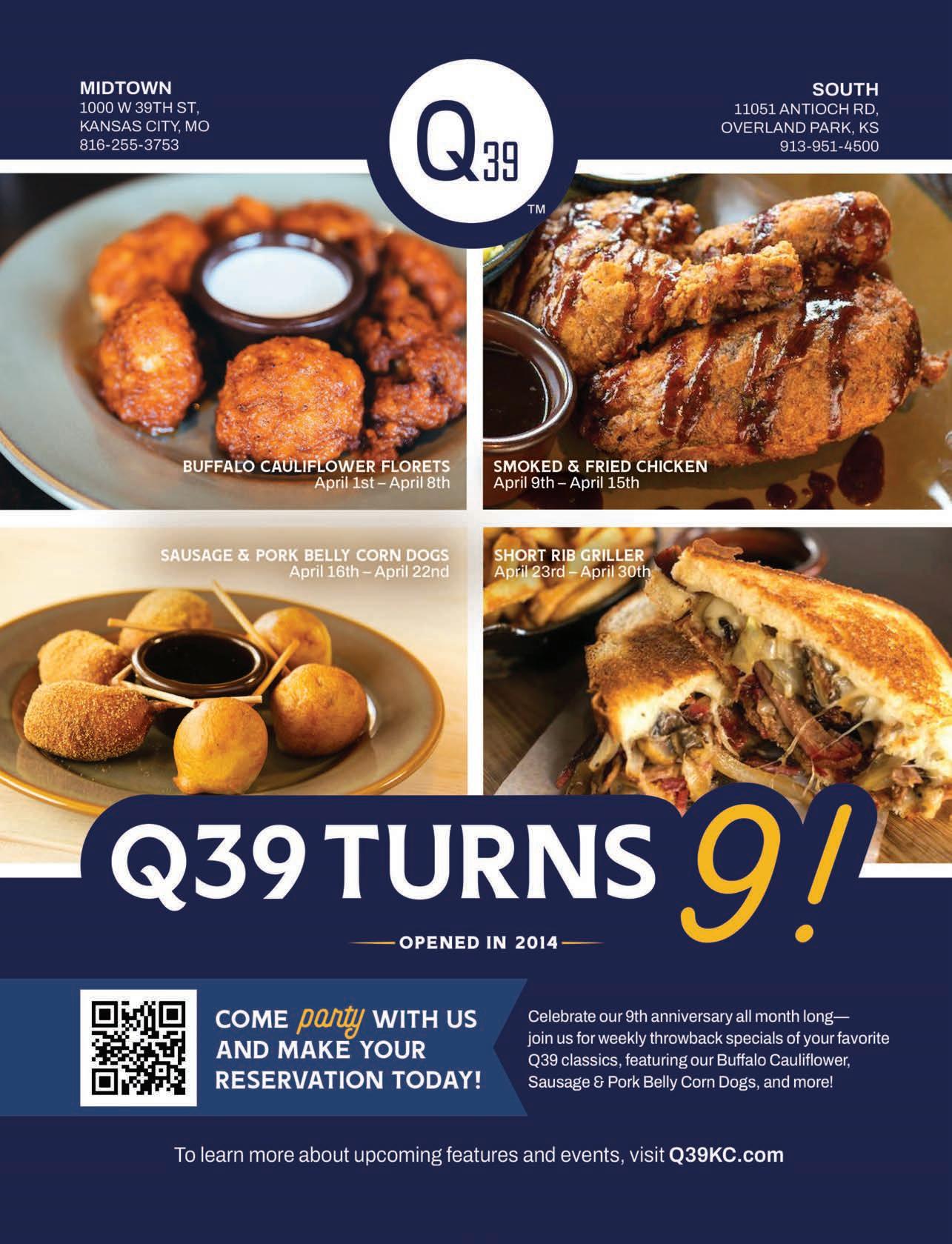 , In celebration of Q39’s 9th anniversary, they are bringing back fan favorite menu items each week throughout the month of April. The April throwbacks include Buffalo Cauliflower, available April 1 through April 8; Smoked and Fried Chicken, available April 9 through April 15; Sausage & Pork Belly Corn Dogs, available April 16 through April 22; and pictured here, the Beef Short Rib Griller, available April 23 through April 30.