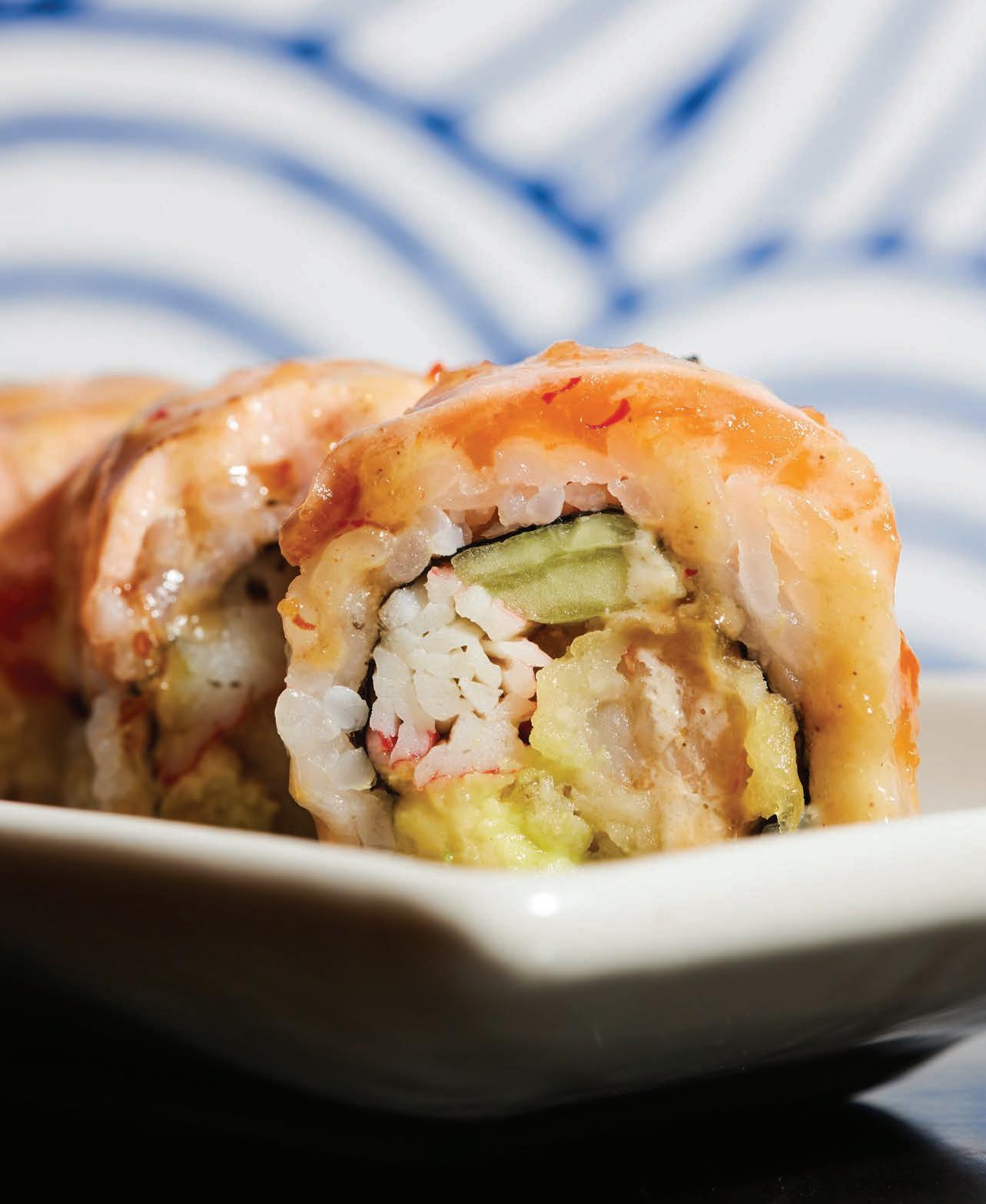 Sushi and barbecue have a long history together. In Japan, some of the shermen who snared salmon slow-cooked meat over a stone box stuffed with charcoal aboard their boats. So it’s impossible to say there’s anything new about the country club roll at the new sushi and barbecue spot Hokibar (100 Ward Parkway, KCMO. hokibar.com). The idea of a roll with baked crab, salmon, shrimp tempura, avocado and cucumber probably occurred to someone over the years but you probably haven’t seen anything like this roll, which is baked and served in foil. It’s part of a solid menu at Hokibar, which also does more traditional rolls as well as excellent rice bowls with chopped sushi, grilled meats and veggies all tied together with splashy sauces. This novel form of fast casual restaurant was opened by a group of friends who love Hawaiian poke bowls, but there’s an obvious Sweetgreen salad in uence, as well. —MARTIN CIZMAR