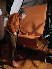 Photographer Caleb Condit making things just right in an e ort to capture the golden hues in a glass of pale ale.