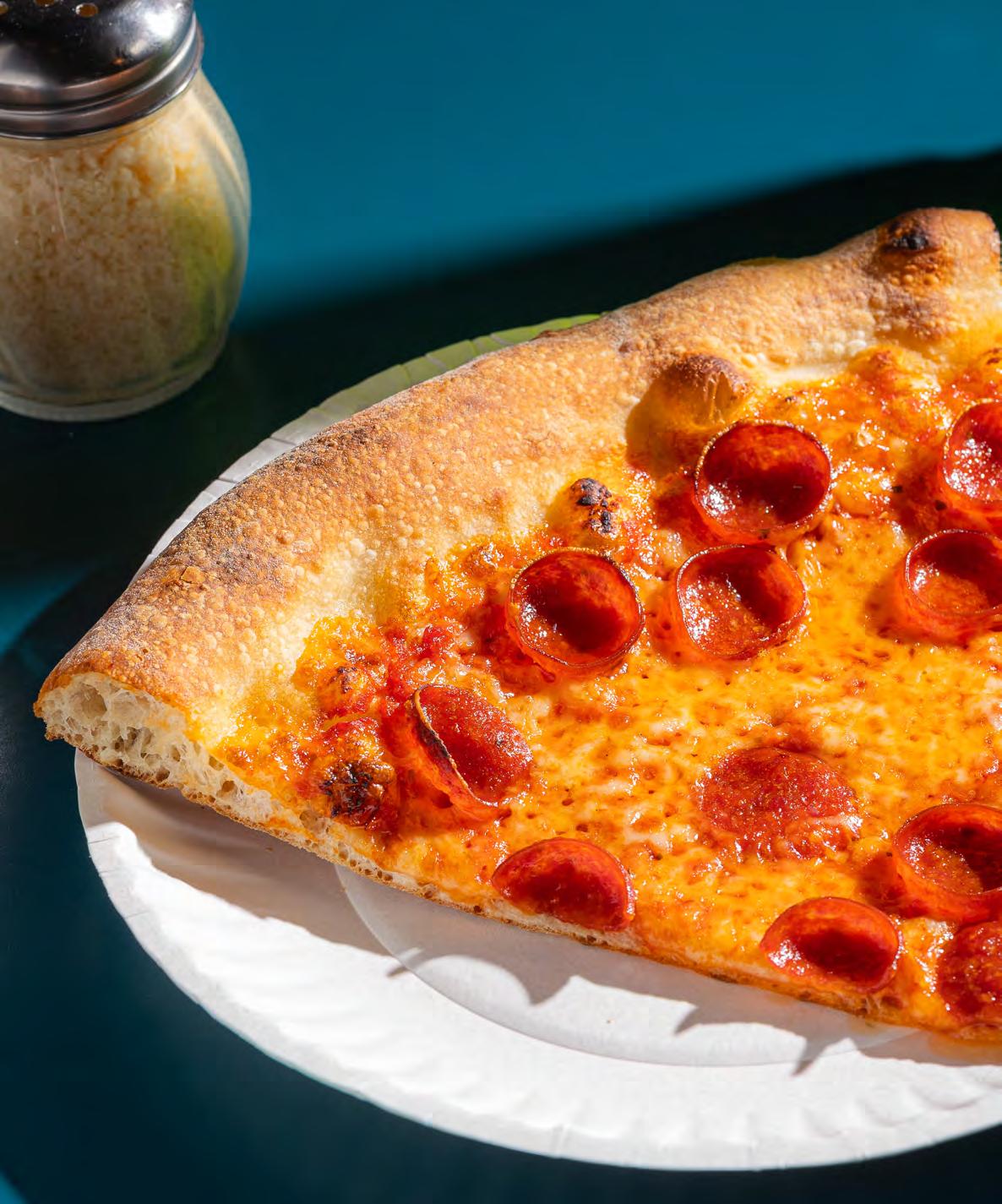 Like Scarr’s and L’industrie in Lower Manhattan, both staples in New York’s namesake pizza style, Northeast Pizza uses the gold standard of tomatoes, Stanislaus. The vine-fresh sweetness is best experienced in the Brooklyn Margherita, spotted with a fresh, creamy mozzarella and peppery basil and finished with a gratuitous sprinkle of aged mozzarella and a drizzling of olive oil. The vodka pie has a similar makeup of ingredients but with an unparalleled creamy rich sauce that begs to be tossed over some penne. The house cheese, Grande, is a mozzarella blend and considered the essential fromage in New York pizzerias, an ingredient comparable to Marconi’s hot giardineria for Italian beef vendors in the Windy City. Any reputable New York-style pizza is doused with this stuff.