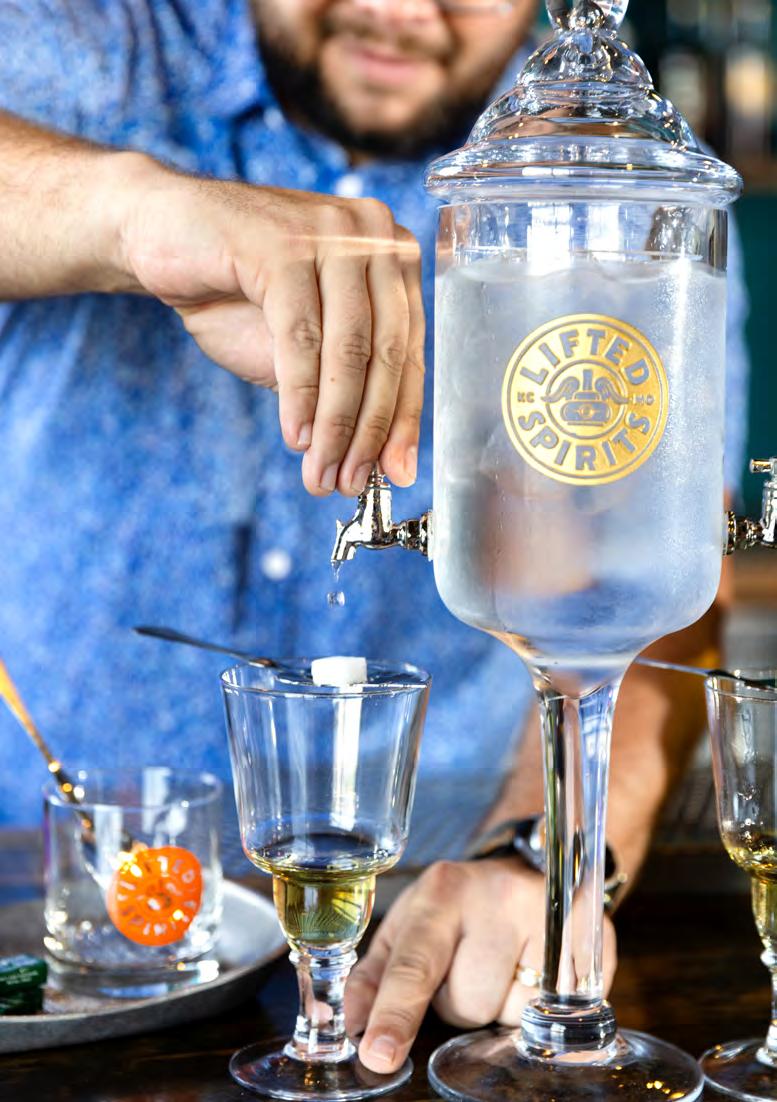 ABSINTHE ISN’T A common U.S. libation, and it’s even less so in Kansas City. In my extensive efforts to seek out places that serve the licorice-tasting spirit, I found only two spots offering a traditional absinthe cocktail: Lifted Spirits Distillery and the Rieger.