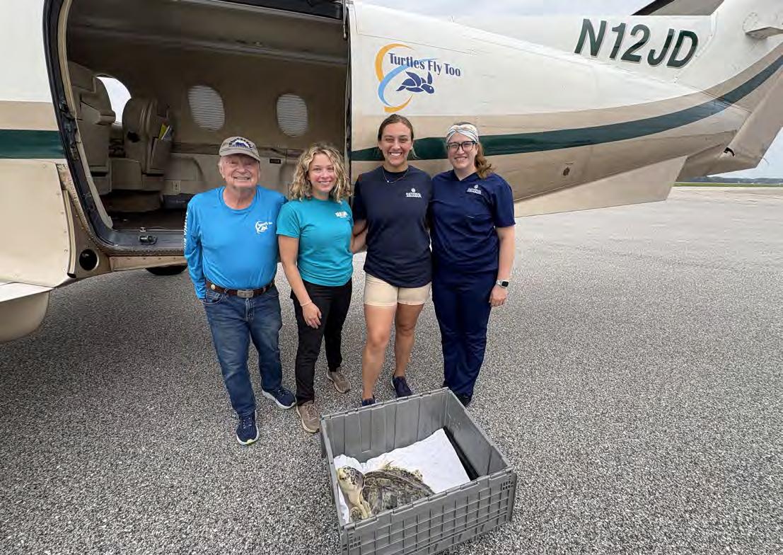 Left to right: Chuck Yanke, lead pilot for Turtles Fly Too; Kayla Leyden, curator at Sea Life Kansas City; Kira Canter, assistant rehabilitation biologist, National Aquarium; Jenn Riling, rehabilitation biologist, National Aquarium