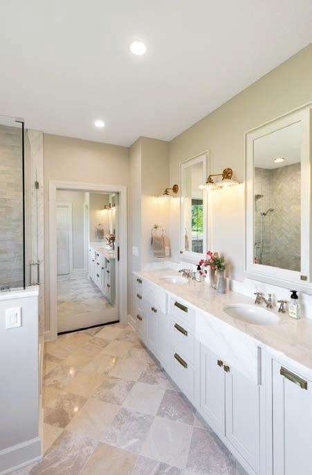Interior design helps you make the most out of a space without compromising functionality, It plays an important role in any remodeling project, even more so in kitchen and bath spaces, since the complexity in these areas can often lead to remodeling nightmares. The award-winning design professionals at KCBR have developed a process that ensures a smooth experience for their clients throughout design and construction. They often pull inspiration from the surrounding environment, as in the pictured bathroom remodel project that is situated on a quaint farm. It’s a modern take on a French country design that orchestrates a balance between polished and patinaed finishes. Handmade zellige tiles texture the shower walls and Bianco Livorno marble accent the vanity and shower. The floors are an eye-catching two-toned honed marble pattern that sets off this serene space.