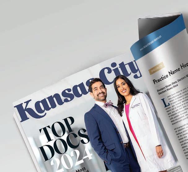 Kansas City magazine is published monthly by KC Publishing, LLC. No part of this publication can be reprinted or reproduced without the publisher’s permission. Kansas City magazine assumes no responsibility for unsolicited materials. Kansas City magazine adheres to American Society of Magazine Editors guidelines, which requires a clear distinction between editorial content and paid advertising or marketing messages.