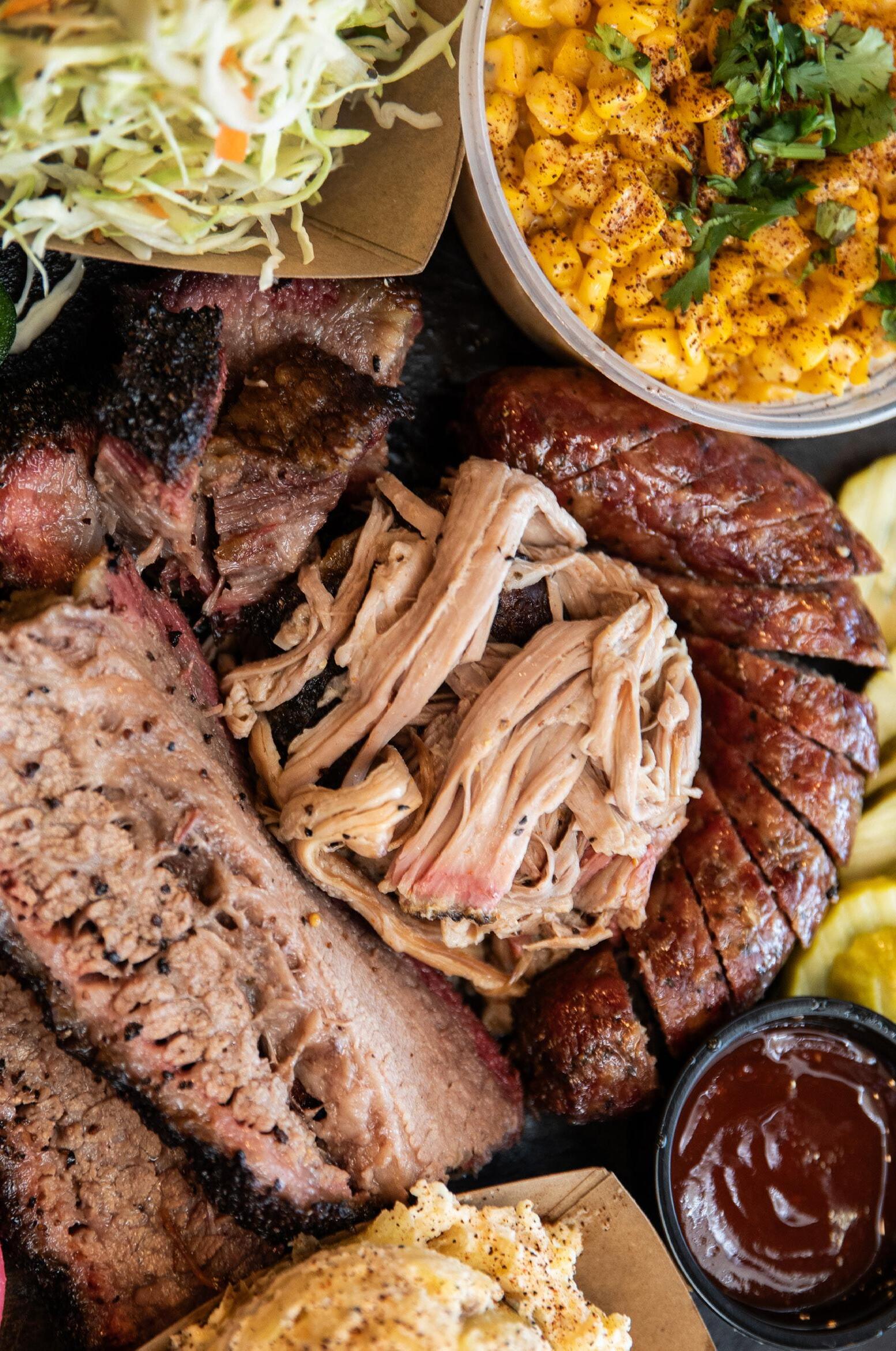 So, what sets Harp Barbecue apart? Chef-owner Tyler Harp adds some Tennessee tang to his pulled pork and a hint of San Antonio saltiness to his acclaimed beef brisket, while his meltingly tender, flavorful spare ribs are pure Kansas City. The brisket, in particular, combines beautifully with the house sauce, which leans to the sweet end of the sugar-vinegar spectrum. Assorted house-made sausage varieties are another highlight, including a blueberry-white cheddar version, in which the fruit provides an accent flavor but not overt sweetness.
