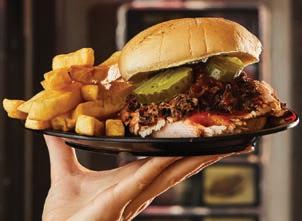 Sides include a creamy mac and cheese made with pasta shells, classic beans and a twice-baked potato salad. The highlight is a sweet potato mash that tastes like pie without the crust.