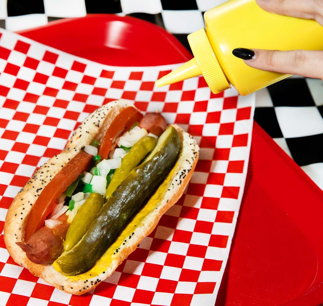 beef (Sauls and Jim’s Alley Bar, for example). There are far fewer spots where you can find Chicago’s extremely unique hot dog, and Morty’s is one of them.