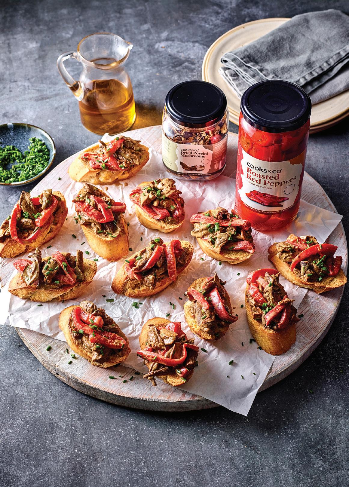 Brush the bread slices with 1 tbsp oil, season and place on a large baking tray, bake for 10-15 minutes until golden.