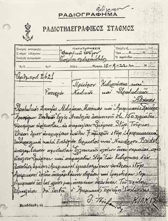 ἀναπόσπα στον τμῆμα τῆς ἡνωμένης, τῆς ἐνδόξου, τῆς ἀθανάτου μεγάλης μας πατρίδος Ἑλλάδος. Ἡ ἀποβίβασις τῶν ἑλληνικῶν μεραρχιῶν εἰς τά μικρασιατικά παράλια ἤρξατο. Τό ἐξωτερικόν φρούριον τῆς Σμύρνης κατελήφθη ὑπό τῶν ἑλληνικῶν στρατευμάτων. Αὔριον οἱ ἐλευθερωταί μας εἰσέρχονται διά τήν κατοχήν τῆς πόλεως. Ζήτω τό ἔθνος».