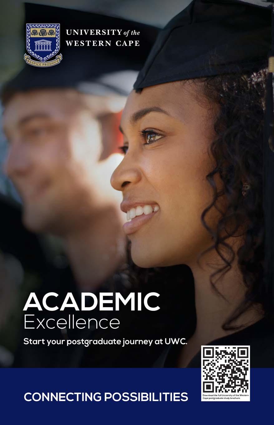 The University of the Western Cape is a national university, alert to its African and international context as it strives to be a place of quality, a place to grow. It is committed to excellence in teaching, learning and research, to nurturing the cultural diversity of South Africa, and to responding in critical and creative ways to the needs of a society in transition.
