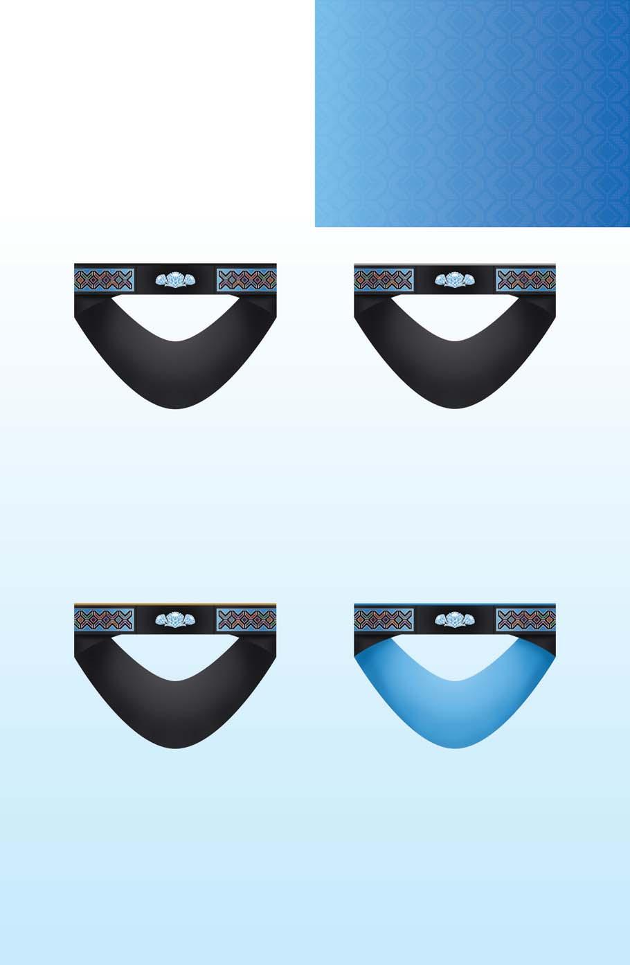 Black, edged with symbolic print in the Faculty colour; the neckband emblazoned with the protea in the Faculty colour.