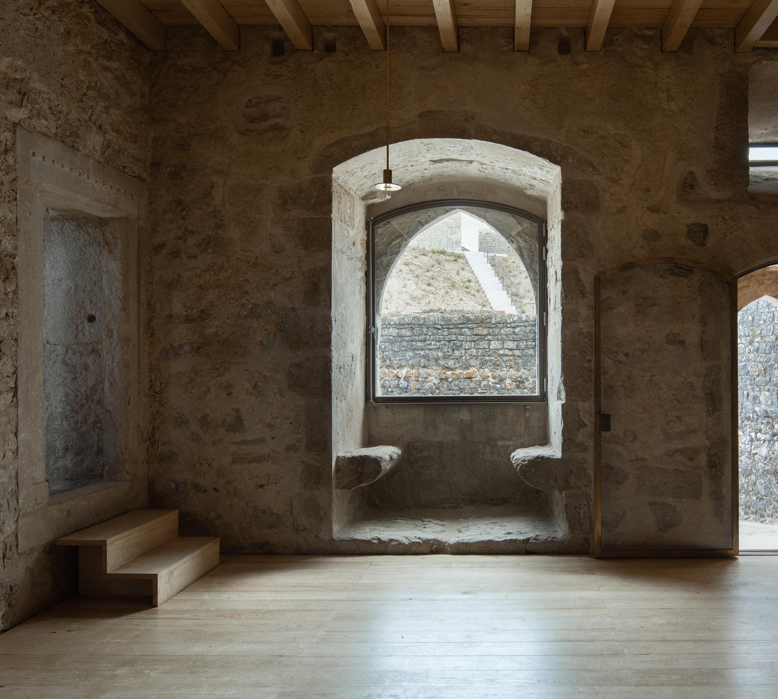 The idea behind the rehabilitation project turning the Ourém Castle into a museum space was to take the monument out of the shadows in order to give it new functional attributes and suitable visiting conditions. This exercise in repurposing, which is often the only way to keep alive and preserve buildings, aimed to maintain the integrity of the whole, in its formal, compositional and constructive coherence. It was deemed that the interventions should be based on the principle of minimum impact, providing a contemporary interpretation of the monument and, at the same time, shining a light on its historical evolution. The restoration of the monument intends for its architectural features to function, in themselves, as exhibition material and for the monument to be understood as a ‘building-museum’, with the space itself and the traces of its evolution serving as the collection.